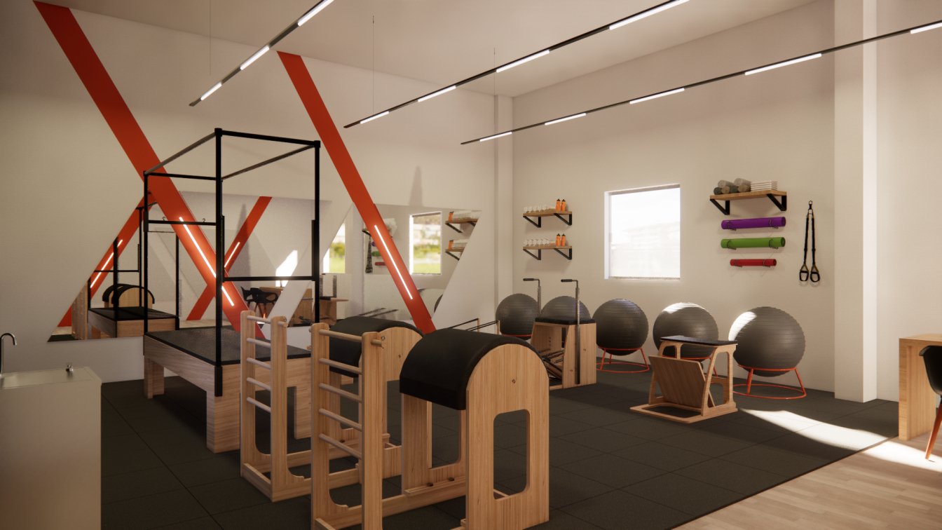 Para esse projeto de interiores de uma academia situada em São Lourenço – MG utilizamos