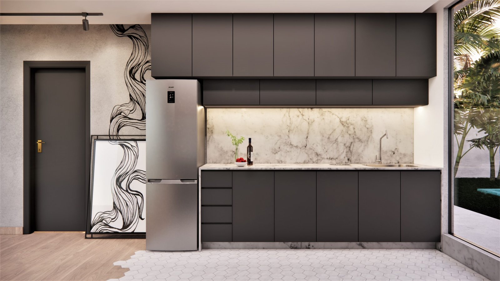Esse projeto tem nosso coração. Pensado para valorizar ainda mais um espaço integrado de sala e cozinha, o design deste ambiente conta com detalhes minimalistas, mas cheios de personalidade. As pinturas e a iluminação planejada tornam o espaço ainda mais único e especial!