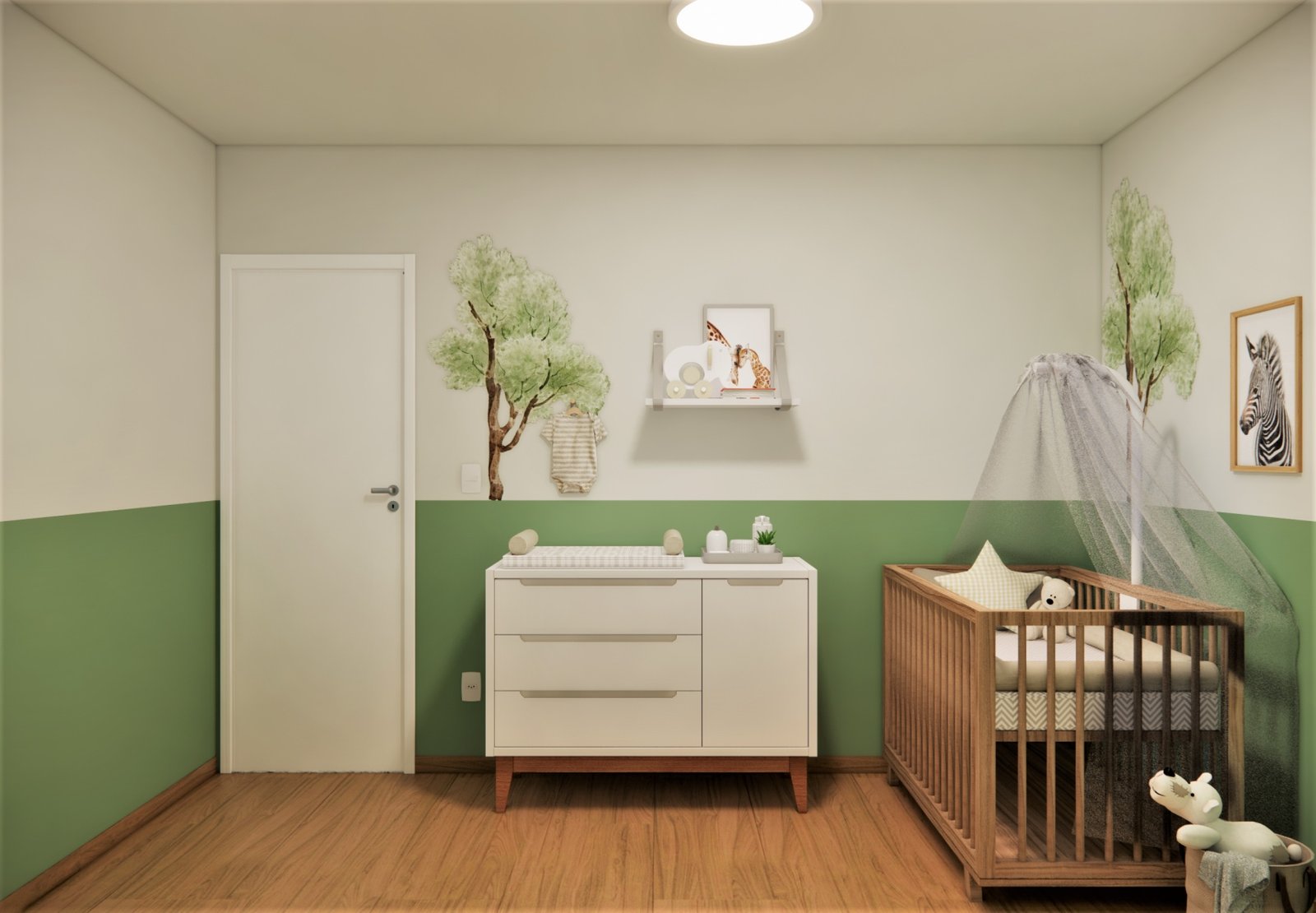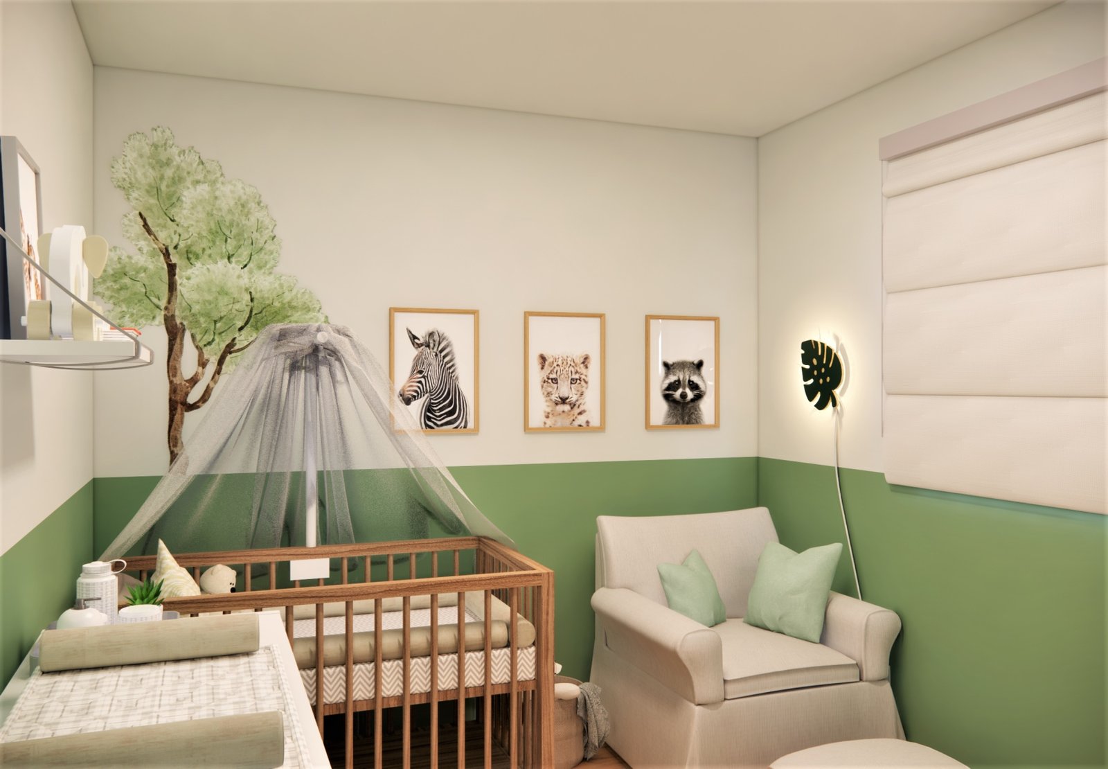 Um refúgio tranquilo para um garotinho incrível! Com tons de verde suave e detalhes claros,